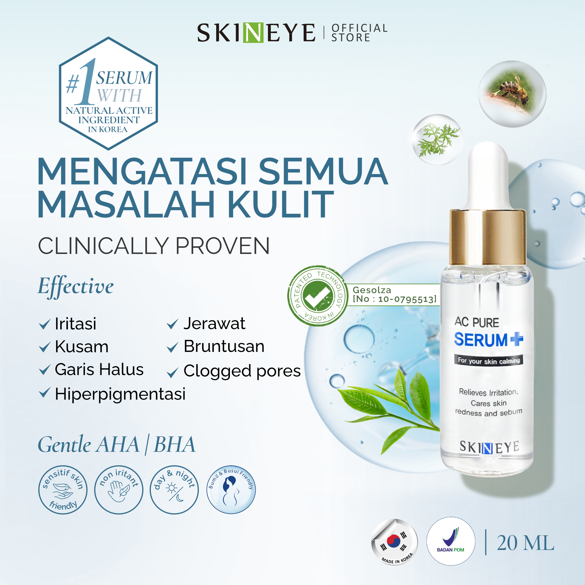 KIPO number : 10-0795513 (SKINEYE AC PURE SERUM 20ml)